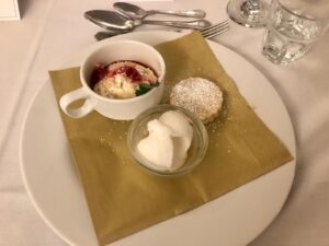 It was the Mini Scottish Trio pudding that was poetry in motion for me. I like a trio. It tells of the chef’s imagination and playfulness and I like to think. culinary enthusiasm. Especially when there is foodie tradition to be played with. Served in a cup, the first of the trinity. was Cranachan. Textured and