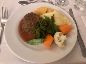 the rich star of the show. Perfect for a wintry January evening. Then with typical RDYC generosity, there was a flourish of further veg. bringing brightness to the meal. Spring-inspired mangetout. green beans and chunks of luminous orange carrot nestled with cauliflower. I could have penned a few poetic lines about this perfect poem of veg.