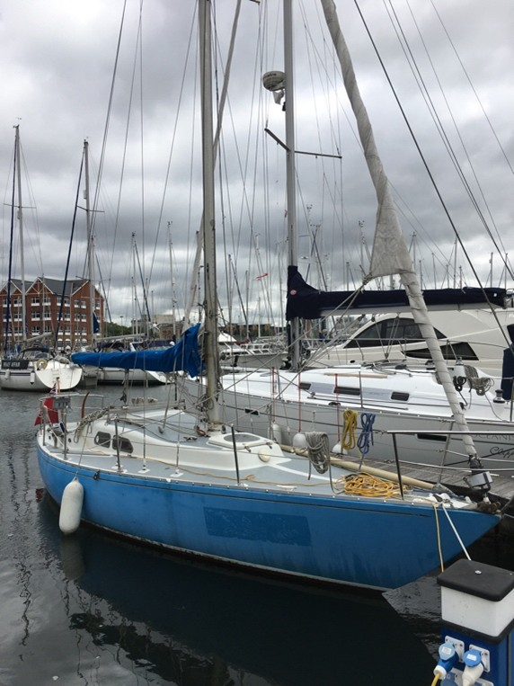 GRP hulL Built 1979. Sails are good (stored at home as is running rigging), standing rigging seems good. Engine has had it as she filled up with water